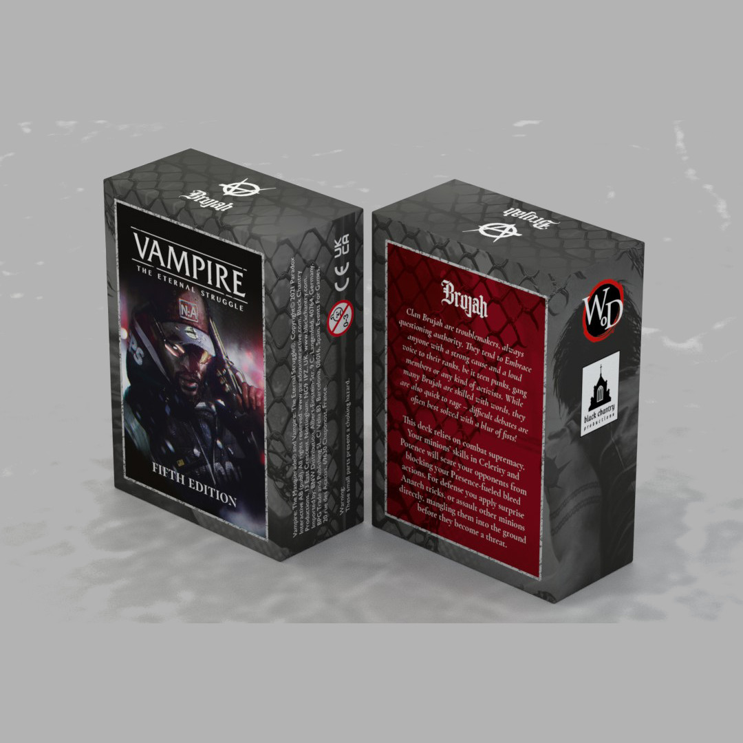 • Temática y Estrategia Únicas: El clan Brujah ofrece un estilo de juego muy diferente, enfocado en la velocidad y la fuerza bruta. Es el mazo ideal para aquellos que disfrutan de la confrontación directa.